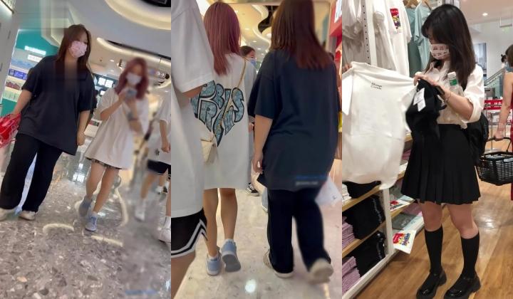尾随偷拍美女裙底风光 ️JK制服萌妹和闺蜜逛街蓝色小熊内内可爱+穿着制服放学美女